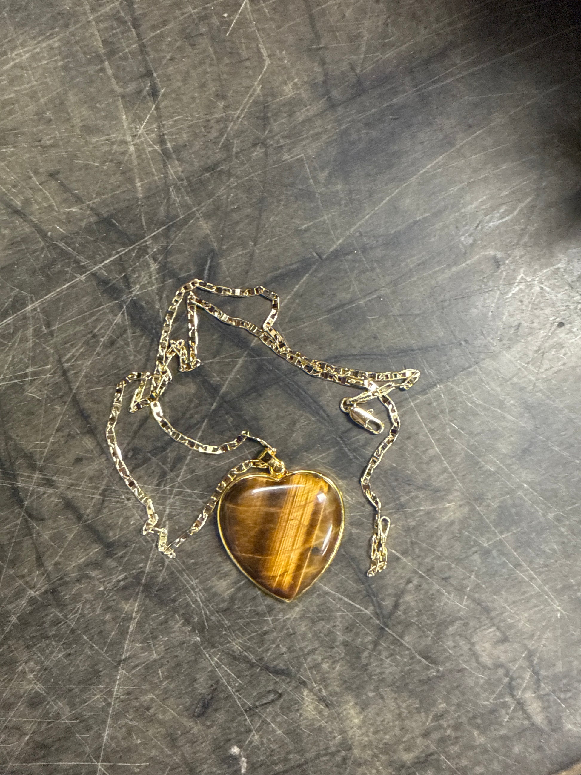 Dije de ojo de tigre de corazón con cadena de oro laminado